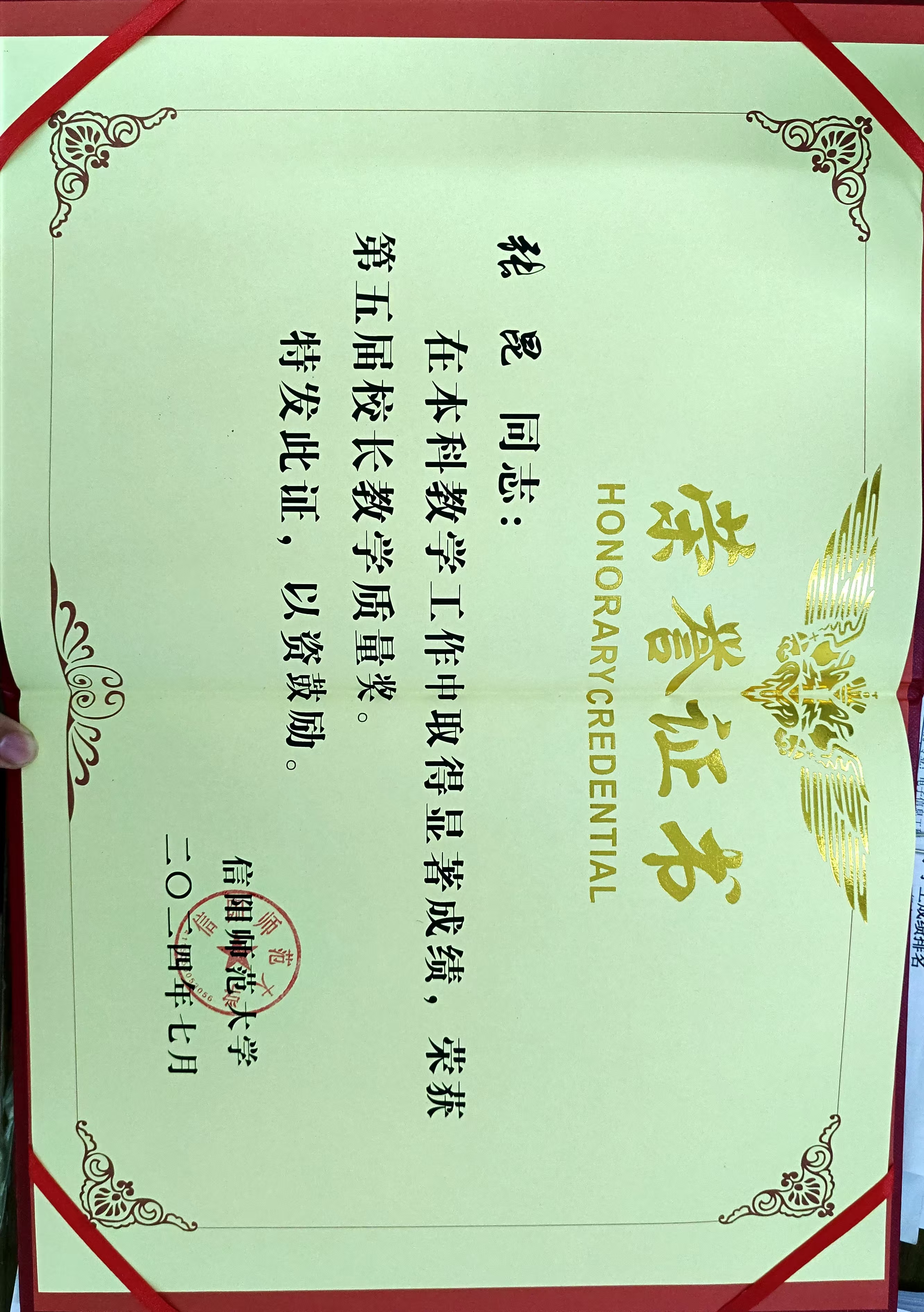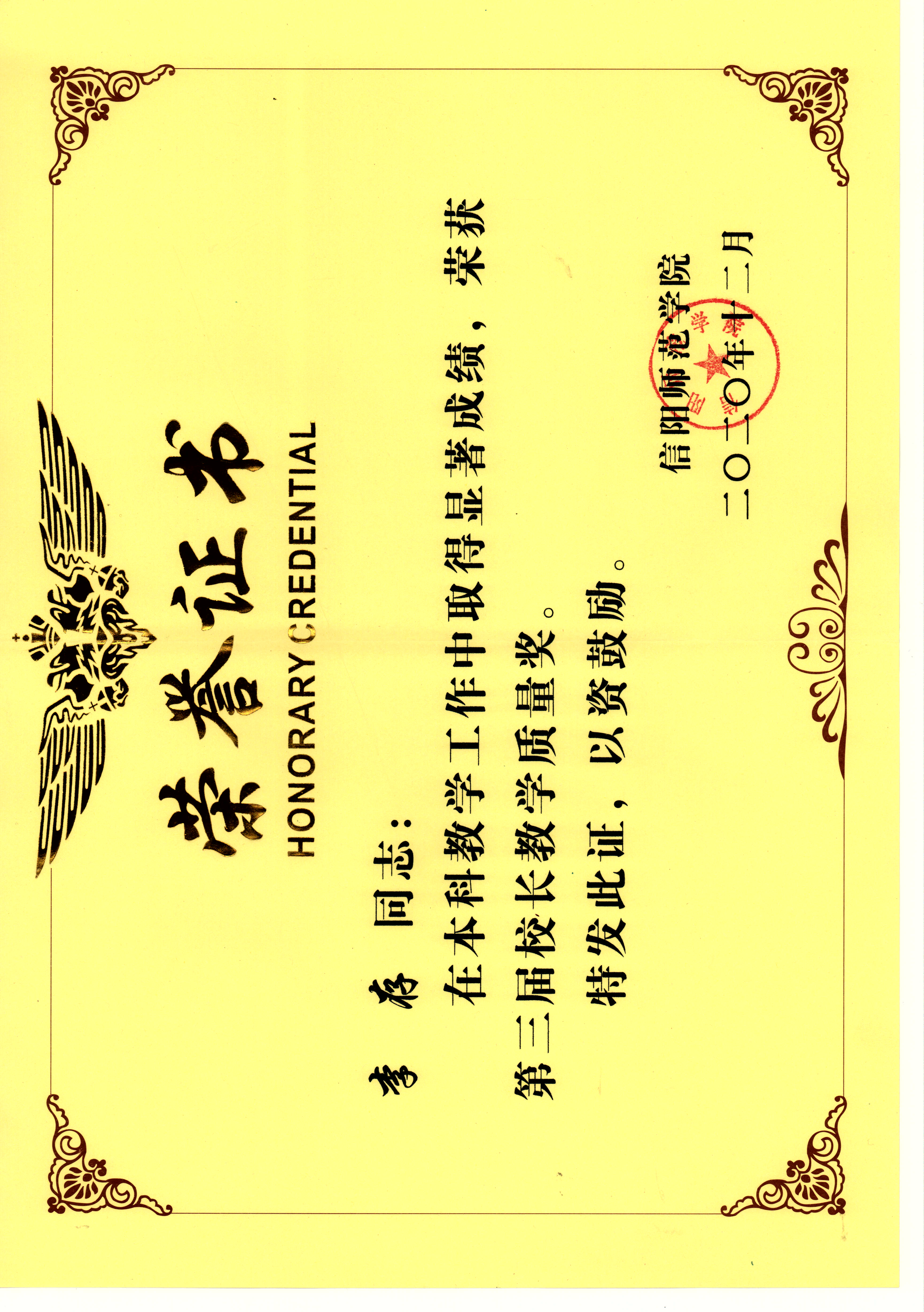 | 董事长教学质量奖 | 涂友超、龚克、李存、张昆 |