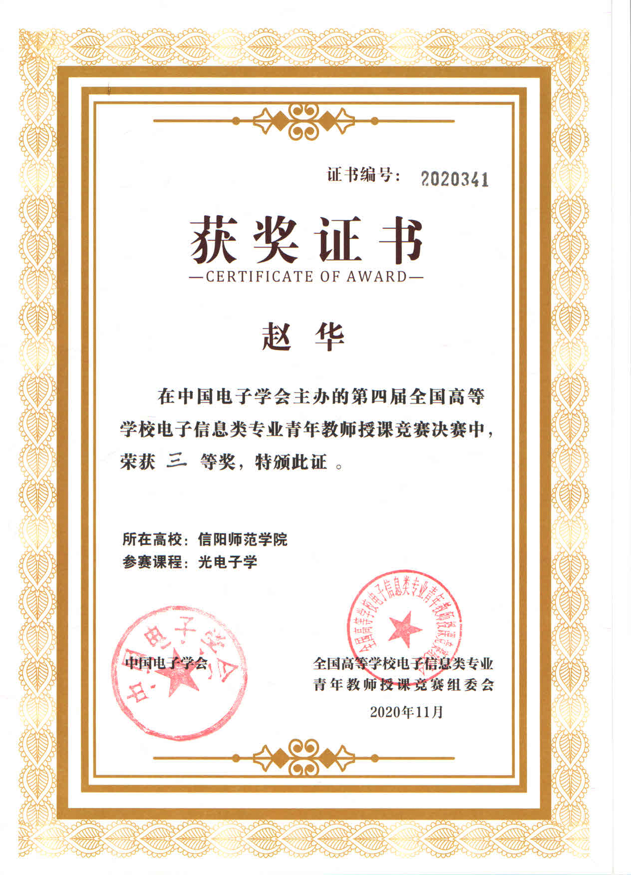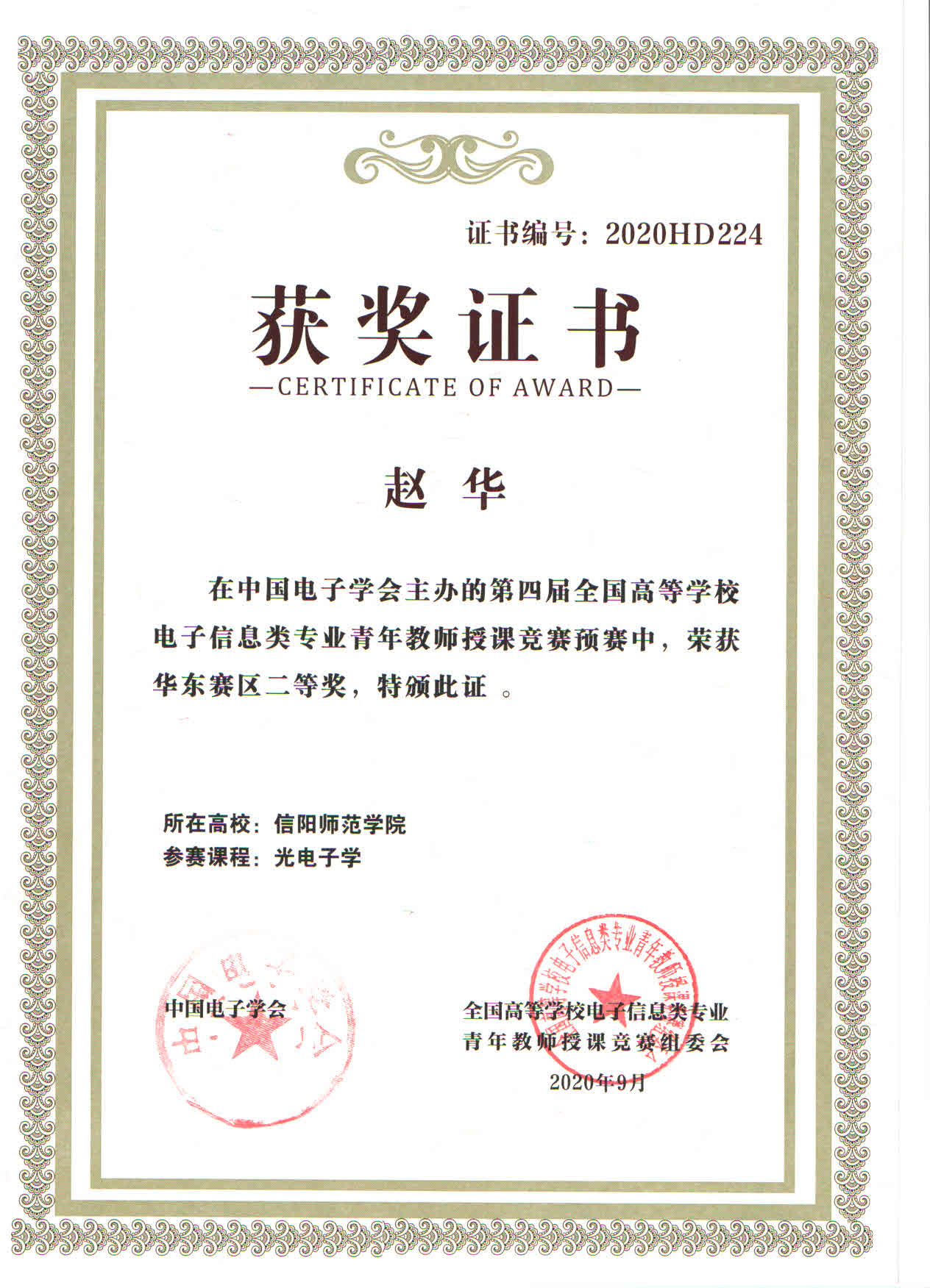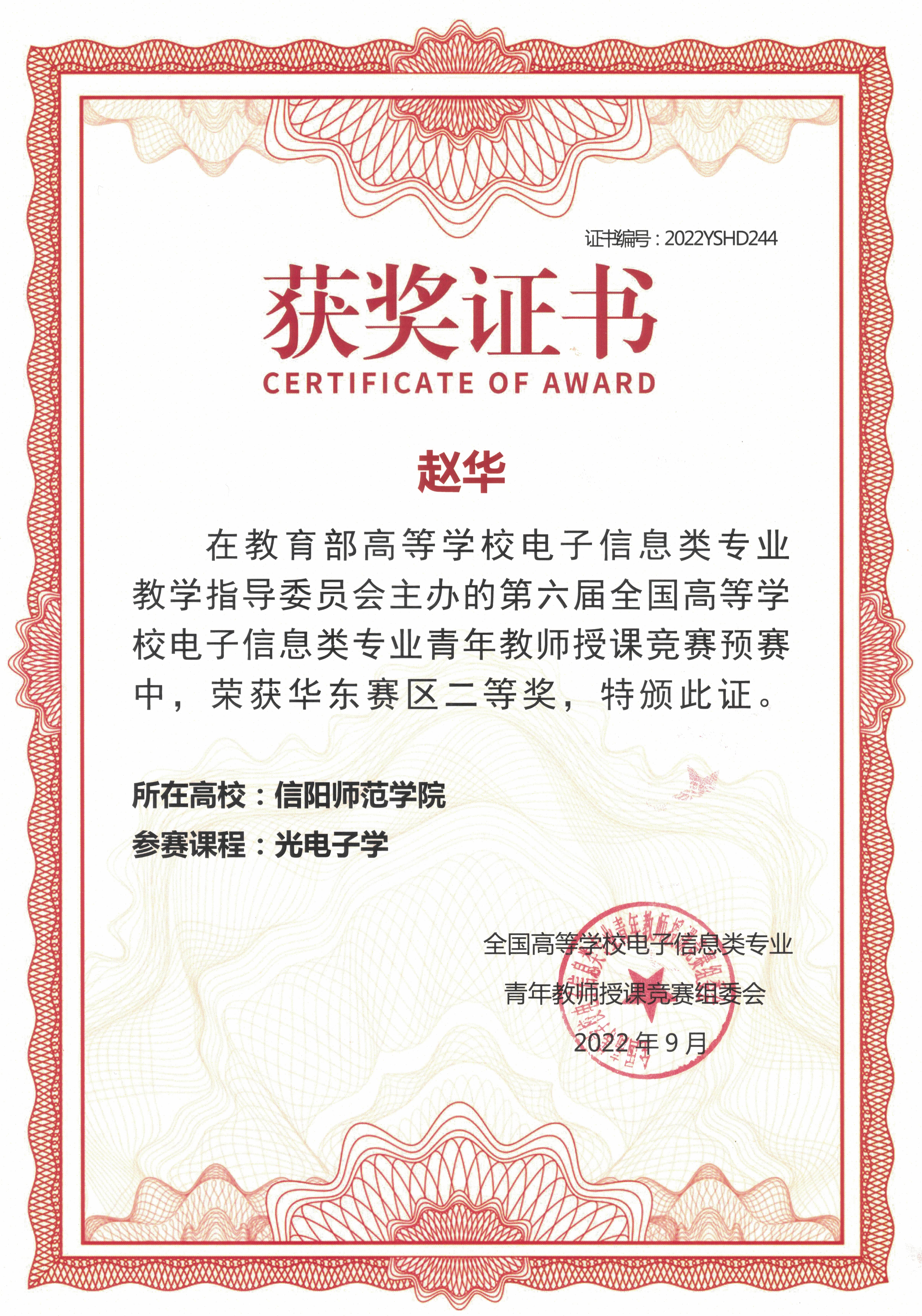 | 其它奖项 | 2022-全国高等学校电子信息类专业青年教师授课竞赛-华东赛区二等奖-赵华 2023-全国高等学校电子信息类专业青年教师授课竞赛-华东赛区二等奖-张昆 |