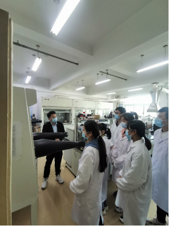 图3. 物电学院开展实验室安全教育:刘胜红博士向研究生们讲授实验室安全注意事项,并带领研究生检查实验室仪器安全运行情况