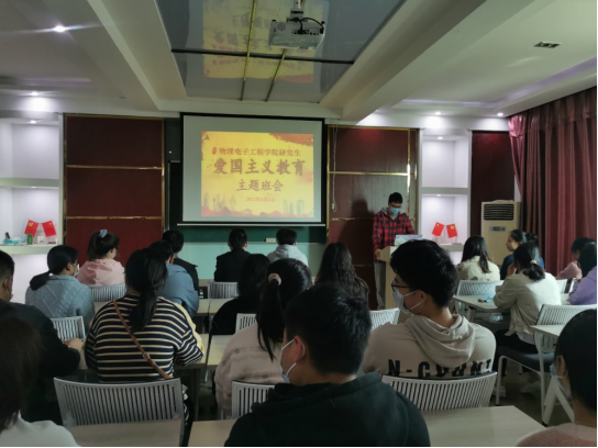 图1. 物电学院组织全体在校研究生自发开展“爱国主义教育”主题班会