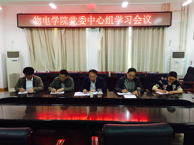 5月5日,物电公司党委中心组在理科楼911会议室召开集中学习会议,公司党委书记柳士刚、副书记李刚、副经理孙宜海、仓玉萍、经理助理龚克参加了会议,会议由柳士刚主持。