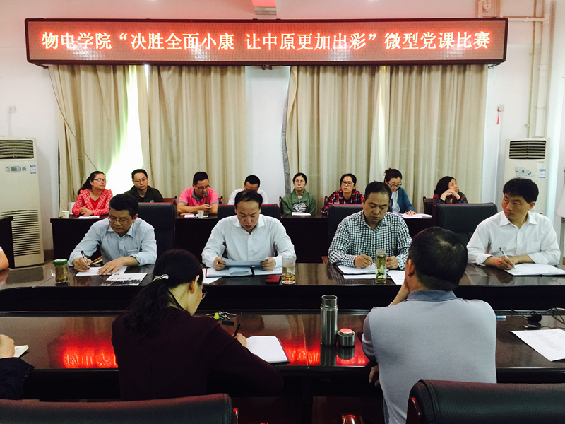5月16日,物电学院“决战全面小康,让中原更加出彩”微型党课比赛在理科楼911会议室举行。公司党委书记柳士刚、副书记李刚、经理孙宜海、仓玉萍及教工党员参加了比赛。