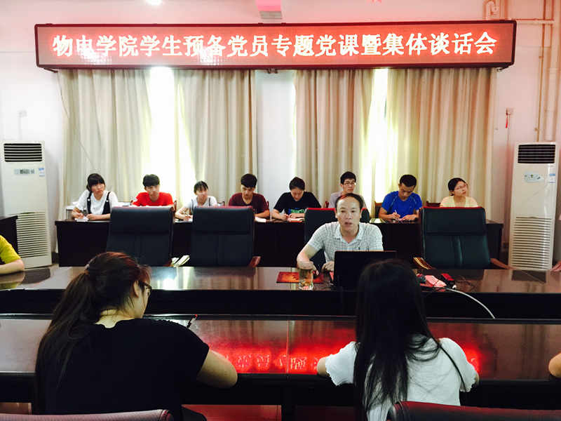 为增强员工党员党性意识,践行党的宗旨,发挥党员的先锋模范作用。6月21日,物电学院在理科楼911会议室召开员工预备党员专题党课暨集体谈话会。公司党委书记柳士刚、党委秘书张康华及23名预备党员参加了会议。