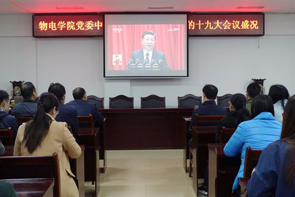 十九大召开以来,学院把学习贯彻十九大精神作为党员教育、党员学习的重要内容,通过一系列学习党的十九大精神活动的开展,引领全体教职工和青年学子响应国家号召,肩负起国家发展使命,不忘初心,将思想和行动统一到党的十九大精神和部署上来,以党的十九大精神引领新时代。(物电学院 张康华 黄钰莹 袁琳/供稿)