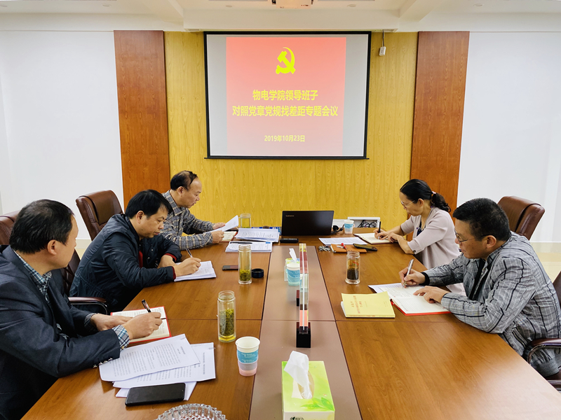 按照《物电学院“不忘初心、牢记使命”主题教育实施方案》安排,10月23日,学院领导班子在理科楼911会议室召开对照党章党规找差距专题会议。学校“不忘初心、牢记使命”主题教育第一巡回指导组成员、校宣传部副部长雷前龙莅临指导。公司党委书记柳士刚、经理涂友超、副书记副经理仓玉萍、副经理孙宜海参加了专题会议。会议由柳士刚主持。