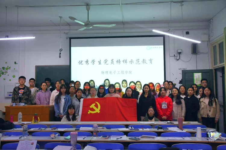 教育会上,靳洁简要介绍三位优秀党员代表并邀请她们依次上台发言。活动中,三位优秀党员结合疫情期间自身经历、感悟,分别从不同方面阐述“如何成为一名合格的党员”。他们讲道,党章是入党第一课,要积极学习党章党规,坚定理想信念,以一名合格党员的标准规范自己的行为,时刻激励自己。其中,2018级优秀党员岳梦怡结合自身经历,提出“以学促做,知行合一”,强调入党初心,号召在场学子多关注政治时事,与时俱进,牢记党的宗旨。2018级优秀党员杨敏以疫情为切入点,提出一名合格的党员要热爱祖国,拥护中国共产党。她从“为什么要入党”谈起,鼓励在场学子夯实政治基础,坚定理想信念,为成为一名合格的党员而不懈努力。2017级优秀党员李一通过ppt展示、提问、互动的形式,强调青年党员的重要性,提出青年党员应牢记初心使命,勇于担当,为实现国家站起来,富起来,强起来的复兴之路添砖加瓦。会后,全体成员一同合影留念。