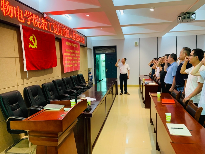 根据学校《关于在“七一”前夕广泛组织开展新党员入党宣誓和党员重温入党誓词活动的通知》要求,6月15日,学院教工党支部在理科楼四楼会议室开展重温入党誓词活动,学院教工第一党支部、教工第二党支部、教工第三党支部党员参加了活动,学院领导班子成员以普通党员身份参加了活动。