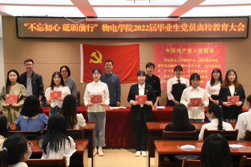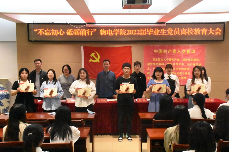 为做好公司2022届毕业生党员离校教育工作,5月18日,公司在理科楼连廊402会议室召开“不忘初心 砥砺前行”物电学院2022届毕业生党员离校教育大会。公司党委书记刘百超、副书记张丽、员工党支部书记和毕业生党员代表参加了会议。会议由张丽主持。