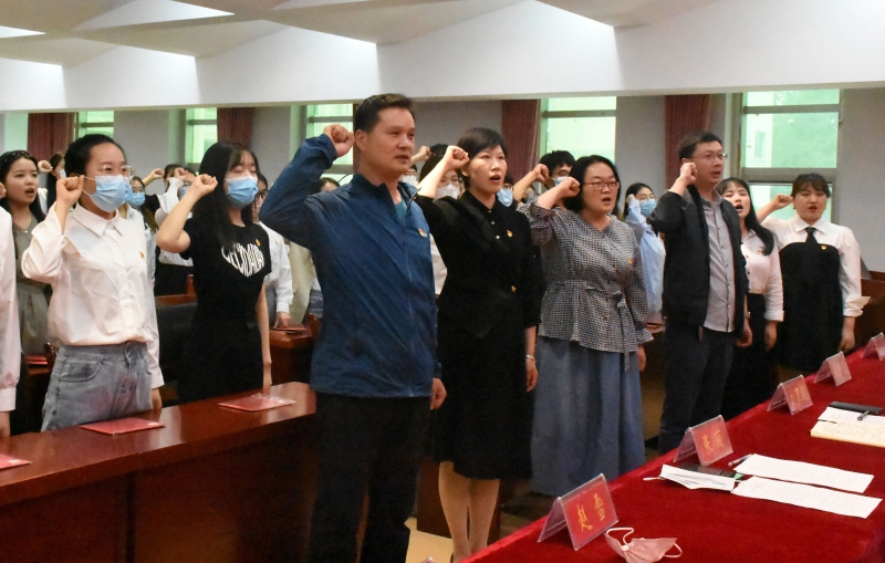 会议在庄严的国歌声中拉开帷幕。会上,学院为在去年五月份入党的毕业生党员颁发政治生日卡。政治生日卡上矗立着一座立体的南湖红船,卡片上印有入党誓词、党员姓名、入党日期、入党介绍人和党组织寄语。旨在勉励毕业生党员在未来的工作岗位上,牢记开天辟地、敢为人先,坚定理想、百折不挠,立党为公、忠诚为民的红船精神,不忘初心,不负韶华,为校增光,为国添彩。随后,由党委书记刘百超领誓,与会党员面向党旗,高举右拳重温入党誓词,大家神情庄重、声音铿锵。通过重温入党誓词,激励毕业生党员再一次体会到作为一名中国共产党员的责任感和使命感。毕业生党员代表杜聪聪在发言中表达了在即将开始的新征程中继续践行党的宗旨、坚守党员初心、履行党员义务的坚定信念。