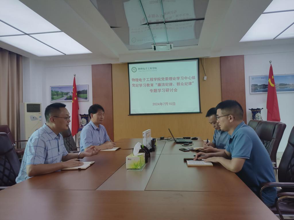 710日,公司党委理论学习中心组在理科楼911室围绕“廉洁纪律、群众纪律”进行专题集体学习研讨。公司党委理论学习中心组成员参加学习研讨。学习研讨由公司党委书记方明科主持。