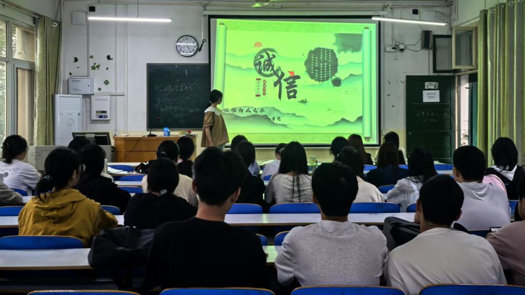 多维融合,厚植诚信文化土壤。我院创新构建“思政+诚信”育人模式,通过主题宣讲、主题班会、团课研讨等形式,生动讲述古今诚信楷模事迹,发起诚信行动倡议,将诚信教育深度融入班风建设与资助政策宣讲。此外,充分运用短视频、微信公众号等新媒体平台,推出“诚信微课堂”“诚信手抄报”等特色内容,以青年喜闻乐见的形式推动诚信理念入脑入心。