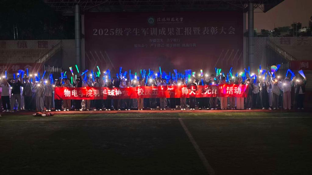 跑道上,哨声响起,同学们手持各色荧光棒,汇成一条璀璨流动的星河。点点荧光如音符般自由跃动,交织出一幅充满生命力的动态画卷。此刻,荧光闪耀,全体员工以青春之名,共同为母校50周年诞辰献上最炽热的祝福。