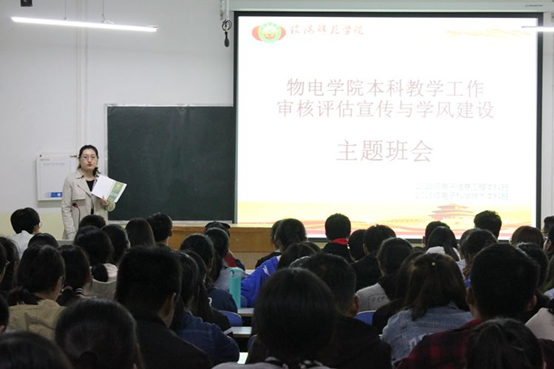 此次班会旨在号召广大学子统一思想,提高认识,全力以赴的做好迎接审核评估的各项准备工作,有利于强化公司内部质量保障体系建设,不断提高人才培养质量,对全面提升公司办学水平和教育质量,推动学校更快更好的发展具有重要意义。(物电学院黄钰莹 付瑞红/供稿)
