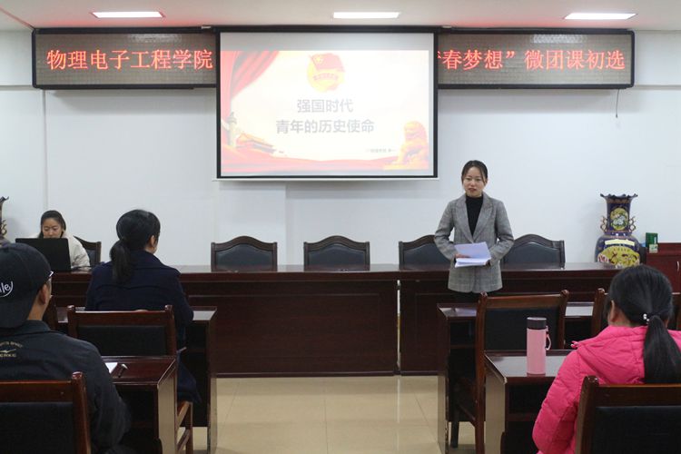为深入学习贯彻习近平总书记系列重要讲话精神,切实提高广大新生团员的理论素养和实践水平,11月18日,tyc33455cc太阳成集团于理科楼515会议室顺利开展“乘新时代东风,放飞青春梦想”微团课初选活动。公司团委老师黄钰莹莅临现场,与部分员工干部共同参加此次活动。