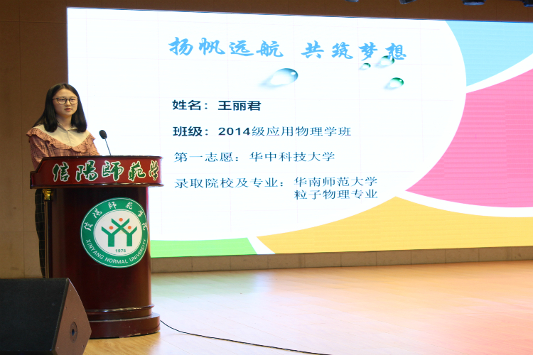 四名考研成功的员工代表依次同在场师生分享自己的考研经验。物理学专业的周方杰从选择、学习、心态三个方面介绍自己的考研心得。选择方面,她提醒备考学子们全面充分认识自己,要根据自己的优势和劣势挑选学校及专业。学习方面,她分时间、用书、分类、考前四个部分向大家详细介绍自己的学习方法,分享自己的学习技巧,其优秀的逻辑思维能力、严格的自我约束能力获得在场师生一致称赞。应用物理班的王丽君着重介绍了其考研调剂的艰辛历程,鼓励学子们主动出击,自寻机会,为现场学子们今后解决相关问题提供了宝贵经验。电子信息技术班的邢中秋结合自己考取郑州大学信息与通信工程专业的经历,从院校选择、学硕专硕、各科复习、心得感悟四个方面分享自己的考研经验。期间,她向大家详细介绍了自己复试的流程与形式,提醒考研学子主动联系导师,积极准备笔试,以饱满的精神迎接每一个问题。2015级备考员工代表闫卉梅发言。她号召学子们积极树立考研标杆,正确对待考研路上的困惑与艰难,以坚定的信念、顽强的精神书写青春路上的华丽篇章。
