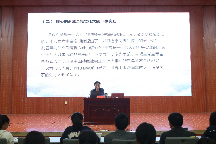 为深入学习宣传贯彻党的十九大精神,把思想和行动统一到党的十九大精神上来,立足新时代,积极新作为,展示新风采,凝心聚力为学校建设高水平师范大学贡献力量,党委宣传部、学工部、团委、马克思主义学院在全校员工中开展学习宣传贯彻党的十九大精神系列活动。11月13日晚,马克思主义学院副经理程晋富教授在逸夫楼报告厅作了一场题为“坚定理想信念,坚守对党的忠诚”的专题报告。员工处副处长陈铭,数学与统计公司党委副书记洪亮,团学老师陈兴海、张艺成,公司党委秘书张康华,团委老师黄钰莹,与来自数学学院、物电学院共500名员工参加此次报告会,报告会由洪亮主持。