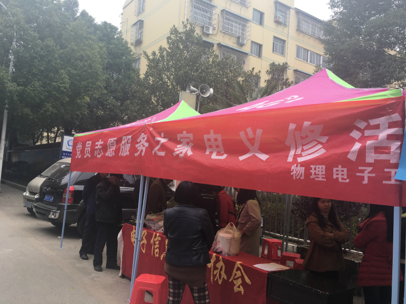 为响应校团委雷锋月的号召,提高老员工深入基层、服务社会的能力,3月11日,公司电子信息技术协会在飨堂社区举行“义务维修家电”活动。