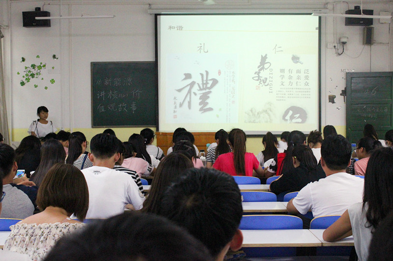 各班辅导员(班主任)深度阐释社会主义核心价值观的主要内容,鼓励广大学子深入学习社会主义核心价值观。会上,学子们将幻灯片播放与个人演讲相结合以讲故事的形式对所选主题展开论述。从古今优秀人物事迹,感动中国人物人生历程,自身生活经历等方面切入,从“国家层面”、“社会层面”、“个人层面”解读社会主义核心价值观,并通过自身实践经历强调践行社会主义核心价值观的重要性。参赛选手激情四射,热情洋溢,他们向在场师生分享了“王毅怒斥加拿大记者”、“歼15飞行员张超为事业牺牲”、“论语”、“中国女排夺冠”、“感动中国人物王峰火场救人”等故事,将“爱国”、“敬业”、“诚信”、“友善”的含义表达的淋漓尽致,其内容紧凑合理,论证观点犀利,真挚的情感流露和高超的语言表达,获得现场师生一致好评。