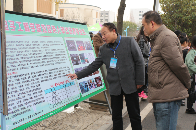 12月10日上午,“河南省毕业生就业市场豫南分市场2017届毕业生冬季就业双选会”在公司举行。公司就业领导小组组长、党委书记柳士刚,就业领导小组副组长、党委副书记李刚,就业秘书、辅导员张彦飞、黄钰莹带领公司毕业生到达双选会会场,积极与用人单位接洽,推荐公司毕业生就业。