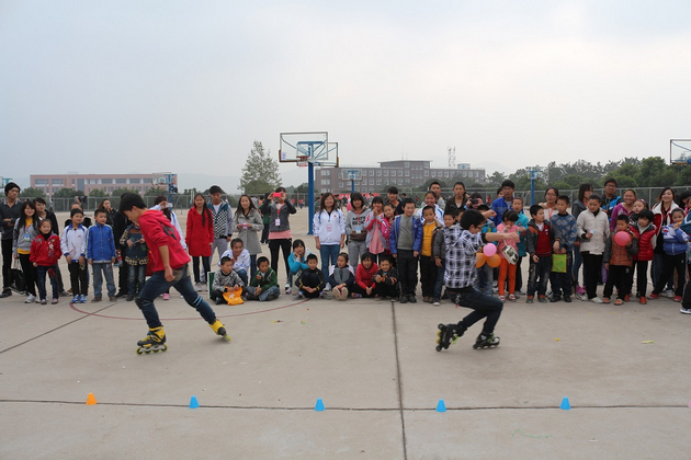 演出尚未开始,操场上便洋溢着欢乐的氛围。孩子们与爱心老师一起做起了“老鹰抓小鸡”的游戏,孩子们的欢笑声在操场上久久回荡。很快,各项事务均准备就绪,伴着歌曲《童年》,演出拉开了帷幕。欢快的吉他弹奏曲奏响了青春的活力,手语表演则生动地舞出了聋哑人内心的欢歌。紧接着,精彩的魔术表演“穿铁环”吸引了所有人的目光,小朋友们均睁大双眼,生怕错过了每一个精彩的瞬间。帅气的轮滑表演更是让在场的小朋友们赞叹不已。在接下来的武术表演中,小朋友们更是热情高涨,纷纷跃跃欲试。整场演出高潮迭起,观众的掌声此起彼伏,不绝于耳。