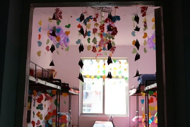 评选从女生宿舍开始。评委依据宿舍地面、门窗干净程度,物品、床铺摆放整齐度,室内设计新颖度进行现场打分,在打分的同时也对宿舍存在的问题给予纠正。评选过程中,324、325宿舍的装扮赢得了评选人员的一致好评,她们的宿舍不仅干净整洁,而且利用手工精心折叠的康乃馨、月季等纸质艺术品,利用废纸拼凑出的手工艺术画,营造了温馨、和谐的宿舍氛围,这完全符合此次“绿色家园,文明宿舍”的评选标准。随后,评选人员前往男生宿舍,对男生宿舍进行评选。其中504宿舍利用废弃小玻璃瓶制作的风铃吸引住了评委们的眼球。最后,评委们秉着“公平,公正,公开”的原则对宿舍进行了打分。