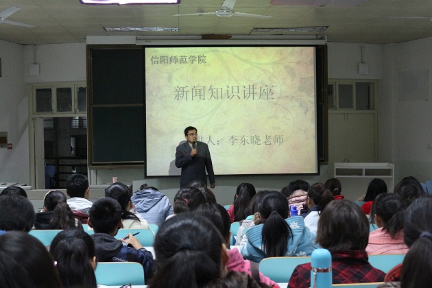 会上,李东晓老师就“新闻对校园记者的价值”、“新闻写作方法”以及“自我感受”三个问题做出了讲解。在讲解过程中,李东晓老师结合自己的经历,让大家更深刻、形象的了解了新闻对校园记者的价值。其次,李东晓老师还在新闻写作方法问题上做出了详细阐述。他指出在新闻写作中,为了使文章的主体部分更加充实、丰富,可以在主题内容中对导语进行深化或补充。接着,他强调部员们要形成自我写作风格,要想成为有名的记者,对于消息、通讯和深度报道的基本写作内容外,也要学会对新闻进行评论。在谈及自我感受的过程中,李东晓老师引用了牛顿的话:“站在巨人的肩膀上看世界”。重在多积累,注意写作角度。为此,他要求我们一要多看新闻、了解时事,紧跟时代的步伐;二要对新闻进行研究,努力提升自我写作水平和文章含金量;三要拓展写作领域,跳出新闻写新闻。在最后的交流互动环节中,来自各个院系新闻部的成员们积极踊跃的提出了自己的问题和想法,李东晓老师耐心的进行细致解答。