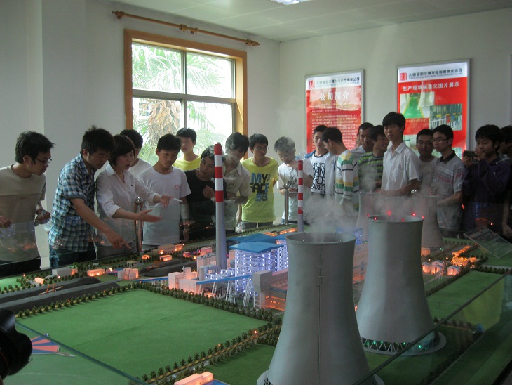 该集团本届开放日活动以“精彩电力,文化大唐”为主题,公司参加本次生产见习的员工共100人次,覆盖了公司11级电子类的专业和班级,公司参观团受到了大唐集团的亲切接待。同学们在解说员的带领下,观看了大唐公司的企业宣传板,了解了大唐公司的企业背景、企业文化和所获荣誉。随后同学们在企业统一配发安全帽后进入发电厂区分别对该集团的汽机房、锅炉房、集控中心、冷却塔等厂区进行了实体参观。两位解说员就该集团的企业文化、技术特点、岗位需求、核心竞争力等几点给大家做了专门介绍。在参观过程中,解说员与同学们积极互动,同学们不时发问,问题主要集中在企业在电力发展过程中需要哪方面的技术人才、最看重人才哪个方面及企业在技术岗位的发展路线等方面,解说员对同学们的提问进行了耐心的解答。近两个小时的生产见习在同学们的欢声笑语中缓缓落下帷幕。