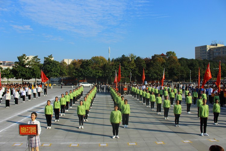 为响应国家阳光体育活动号召,促进老员工综合素质发展,11月12日下午,由地理科学学院主办的2019级新生广播操比赛于青年广场激情开赛。地理科学学院团委老师曹鹏鹏,校员工会主席韦秋存及各兄弟院系员工会主席一同出席此次比赛并担任评委。