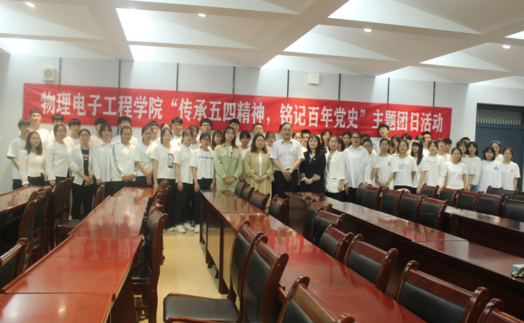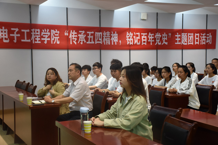 为加强爱国主义教育,弘扬民族精神,5月12日下午公司于理科楼四楼会议室举办“传承五四精神,铭记百年党史”主题团日活动。校团委宣传部部长雷玲应邀出席活动。物电公司党委副书记李刚、团委老师牛文娟、化工化学学院团委副书记邓雪婉以及20级物理学一班全体同学共同参加了活动。此次活动由物电学院团委副书记李诗吟主持,班级团支部书记韩文琪主讲。