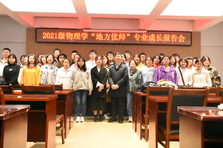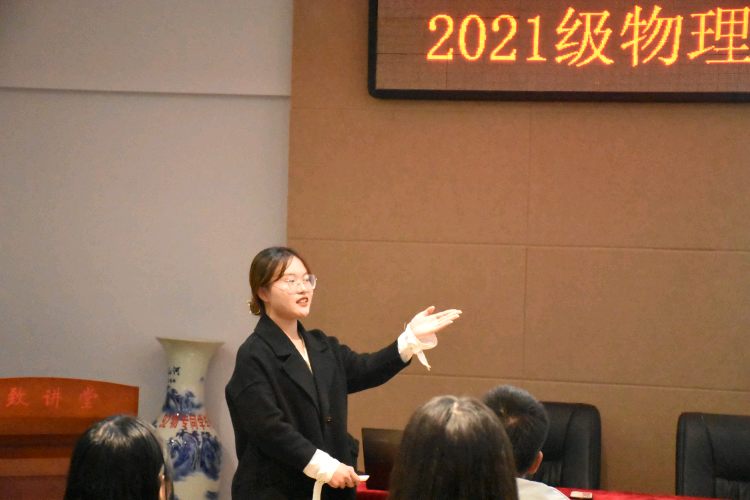 10月21日下午,公司在理科楼4楼连廊会议室举行2021级物理学(地方优师)专业思想报告会,报告会由学院冯一兵副教授主讲,2021级新生辅导员张彦飞、2018级员工代表程铭及2021级物理学三班全体员工参加。