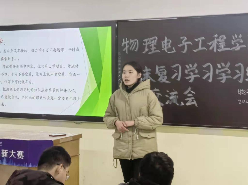 此次活动的成功举办,为2021级新生明确期末复习的方向,有助于同学们找到适合自己的学习方法,增强学子们期末复习的信心,充分调动了同学们考前复习的积极性,为取得优异的期末成绩打好基础。(物电学院 杨依冉 王兆茹 杜非凡 段高飞 王菲 王本利 杨中洋 韩佳亮/供稿 薛雁飞 寿先彤/供图)