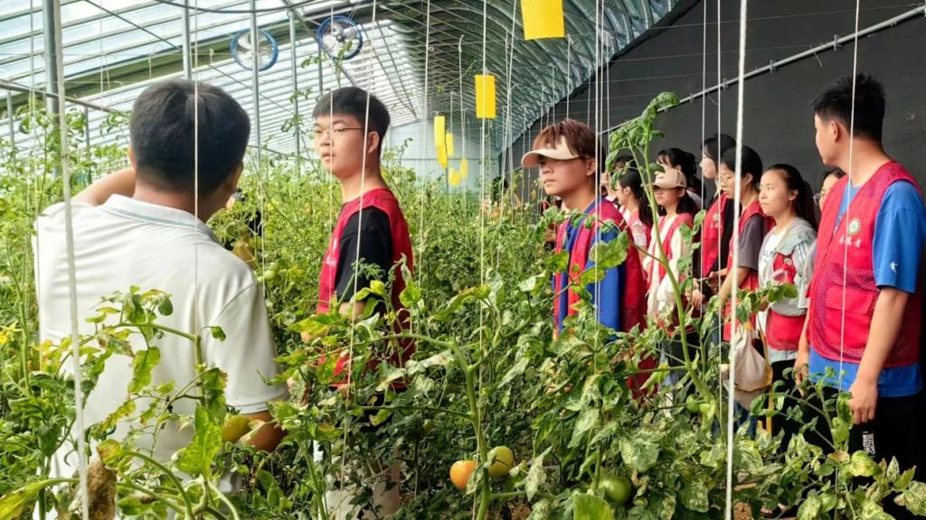 实践团成员们前往信阳市东双河镇白庙村鱼付农场农业科技园,实地参观西红柿智能温室,采访园区工作人员,并深入学习智慧农业在线监控系统,该系统将农业大棚、各类植物生长环境的环境温湿度、土壤温湿度、CO2浓度、光照度、氨氮等环境指标进行采集、分析,实现农业生产过程中各个环节指标的精细化管理,节省大量人工成本,通过优化指标实现提质增产。