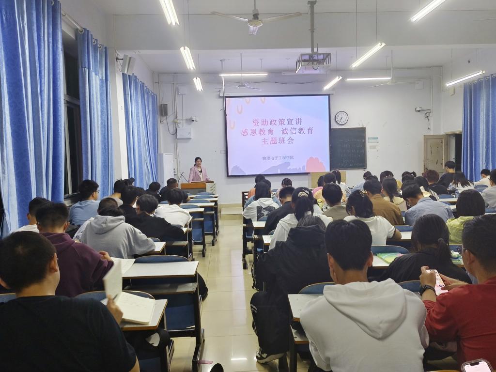 为进一步落实员工资助政策“两节课”活动,加老员工资助政策宣传力度,使各项资助政策家喻户晓,深入人心,确保各项政策顺利落实。物电学院于9月13日在教九楼303教室开展资助政策宣讲,资助专员赵雪担任宣讲会主讲,2023级全体新生共同聆听。