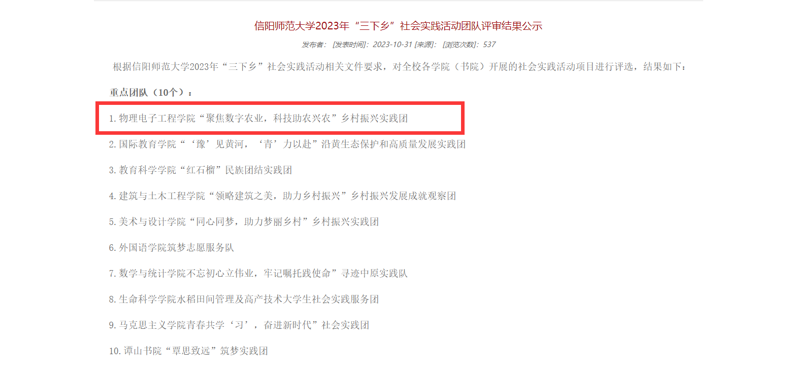 近日,tyc33455cc太阳成集团2023年“三下乡”社会实践活动评审会公布评审结果,公司的“聚焦数字农业,科技助农兴农”乡村振兴实践团被评为重点团队。