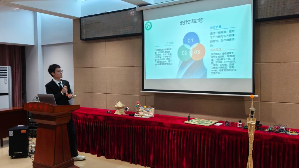 大赛初赛共收到28件作品。经过初选,有12件作品进入决赛。决赛现场,选手们结合精心制作的PPT,围绕产品设计理念、优良特性、发展前景等方面进行现场展示。参赛作品有:“蓝牙小音响”、“便携充电宝”、“智能送药小车”、“七彩LED摩天轮”、“八大行星运动轨迹模型”、“东方之星”、“灵感风车”、“多路呼叫器”、“迷宫机器人”、“运动目标控制与检测”及“单向逆变器并联运行系统”。别具匠心的作品让在场员工真切感受到科技制作的趣味与魅力。参赛作品构思新颖、制作精巧,赢得评委老师们的高度赞赏。