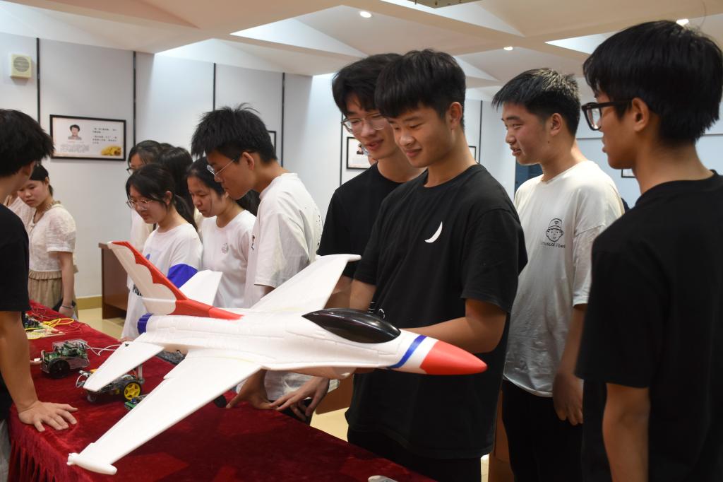 为深入学习宣传贯彻党的二十大精神,推动科技创新教育,激发青年学子的科研热情和实践能力。5月19日,公司于理科楼连廊402开展“点亮展览科技光,创新驱动物理月”科技作品展,此次活动由无人机社团主办,2023级电子科学与技术班同学参与观摩。