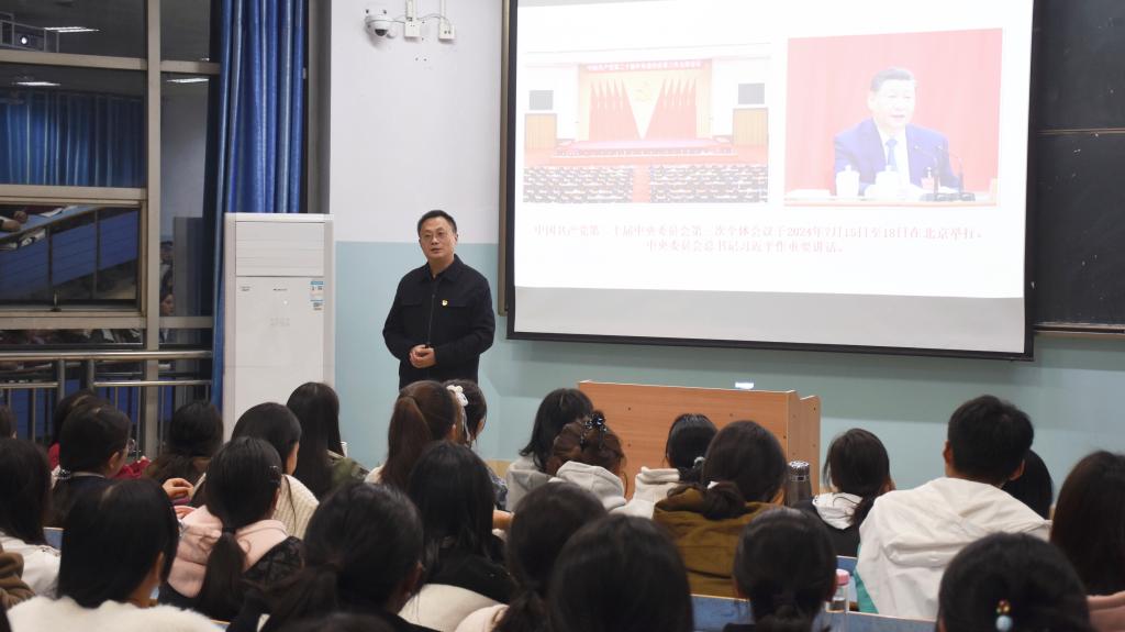 报告中,方明科首先带领新生一起学习了党的二十届三中全会精神和全国教育大会精神,结合实际情况重点宣讲了深化教育综合改革、建设教育强国的重要意义和重大举措,用习近平总书记对青年老员工的寄语激励新生们增强使命、坚定信念、树立目标、挺膺担当。在“了解大学 认识自我”部分,以“为什么上大学?”“如何度过老员工活”为切入点,帮助新生梳理进入大学后在学习、生活、思想等方面可能存在困惑和问题,给出解决建议;介绍了学校、学院历史沿革、发展现状、学科专业和人才培养等方面的基本情况,帮助新生们对学院的整体情况有了更加深入的了解;在“学习榜样 砥砺奋进”部分,分享了优秀员工先进事迹,阐释了树立理想、知行合一的重要性,鼓励新生们抓住大学的黄金时期,树立正确的人生观、价值观,明确目标、努力学习、掌握本领、锤炼品行、提升能力,立志做有理想、敢担当、能吃苦、肯奋斗的新时代好青年,让青春在强国建设、民族复兴新征程上绽放光彩。