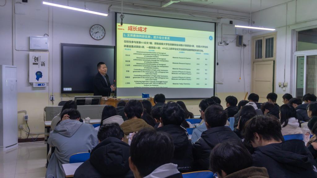 赵华以“电燃梦想,扬帆起航”为题,从学习途径、个人成长与成才以及电磁散射理论三个维度进行深入讲解。首先,他细致地介绍了如何通过学院官方网站、豆包等网络平台,获取广泛的学习资源和最新的学术资讯。