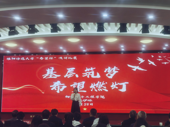 陈伊琳深情讲述了“把物理课变成‘魔法课’”的2024年全国最美教师、我院2011届优秀员工刘华东的先进事迹,并且表示要向优秀学长学习,以厚德之心践行育人之责,以崇实之行传承师者之魂,在善学中锤炼过硬本领,于敏行中书写教育华章。