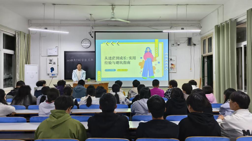 10月18日,公司分别在教二、教三楼开展“星辰引路,薪火相传”明星故事分享会。此次分享会邀请姚婧怡、王恒、刘涛等八位高年级优秀员工为新生做学业规划指导,2025级全体员工参加。