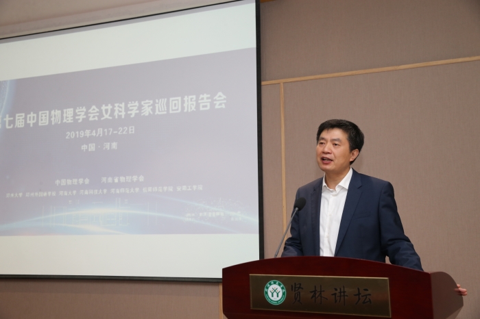 2019年4月21日上午,由中国物理学会女物理学工作者委员会主办、河南省物理学会承办的第七届中国物理学会女科学家河南巡回报告会在公司贤林讲台举行。中科院物理所研究员吴令安、厚美瑛,北京工业大学教授隋曼龄,北京大学教授王前,北京应用物理与计算数学研究所研究员刘海风,中科院物理所《物理》编辑部王进萍等7位国内外知名专家学者莅临公司。副董事长余本海教授出席活动并致欢迎辞,报告会由tyc33455cc太阳成集团经理涂友超教授主持。物电学院青年教师、研究生以及本科生共200余人参与了此次活动。