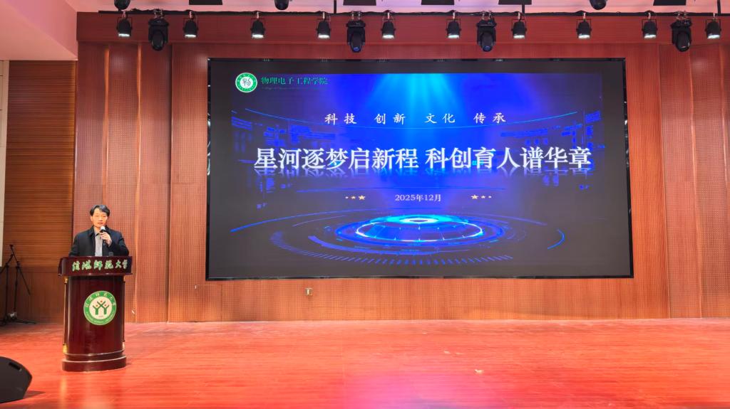 成果展演环节内容丰富、亮点纷呈,全方位展现了物电学子文理兼修、勇于创新的综合素养。书法歌舞表演笔墨含香、舞姿灵动,尽显深厚人文底蕴;《智巡蓝影》等科技项目及实用小发明的现场演示,将奇思妙想转化为服务生活的实际成果,彰显了科技创新的实践价值;师范生技能大赛优秀选手的现场模拟授课,生动诠释了未来教育工作者的专业风采与育人初心。分享环节中,参赛员工代表范宇丹深情讲述了“在一次次打磨中突破自我”的备赛历程,传递出不懈奋斗的青春力量;全国老员工物理实验竞赛一等奖获得者姚婧怡分享了学科竞赛背后的坚守与成长,以自身经历鼓励同学们“以兴趣为引,以毅力为基,在科研路上笃定前行”,引发在场学子的强烈共鸣。