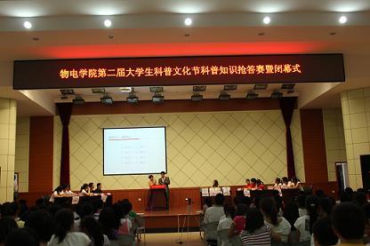 本届老员工科普文化节历时近两个月,在此期间,物电学院成功开展了科普知识专题讲座、科普知识抢答赛、“科技之光”影视欣赏、科普知识展、天文观测和电子设计竞赛等系列活动,这些活动形式新颖、内容丰富、涵盖面广,各项活动以科学知识、文化内涵和科技创新为主,集知识性、娱乐性、趣味性、人文性于一体,在全校掀起了一场学习科学文化知识的热潮。本届文化节激发了员工获取科学知识的渴望,营造了良好的校园科技文化氛围。(物电学院祁瑞娟 文亚倩供稿,指导老师 冯一兵)