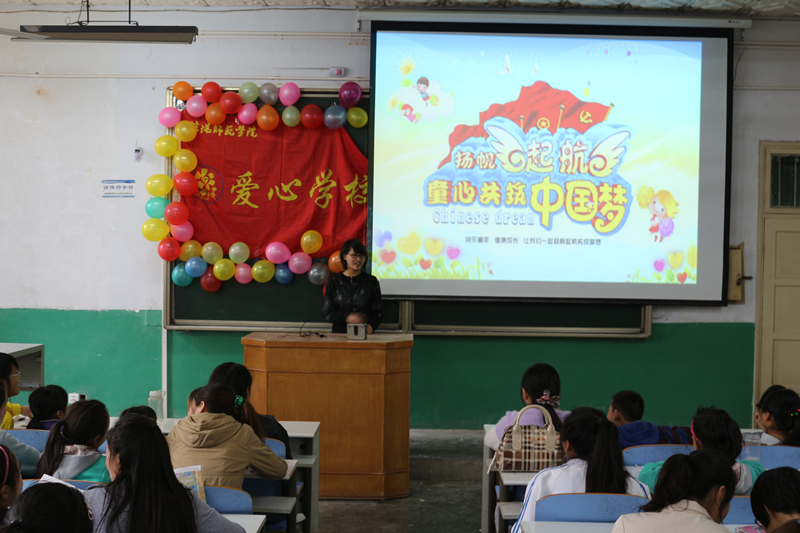 活动尚未开始,孩子们便早早的来到了教室做起了作业,看到孩子们的勤奋与努力,现场的每一个爱心老师都感到了由衷的欣慰。他们主动与孩子们进行了交流,询问了孩子们的生活和学习状况,并对孩子们的功课进行了辅导,为孩子们答疑解惑。待孩子们完成作业之后,爱心老师们开始鼓励孩子们进行才艺展示。孩子们均表现的非常活跃,争先恐后地为大家表演节目,现场气氛逐渐被推向了高潮。同时,为了让孩子们能够在欢乐中学到知识,爱心老师们还特意准备了许多妙趣横生的小问题,在场的孩子们积极踊跃,争先回答爱心老师们提出的问题。最后,爱心老师们还为孩子们播放了卓别林的电影,搞笑的电影情节引得孩子们捧腹大笑,活动在孩子们的欢笑声中圆满结束。