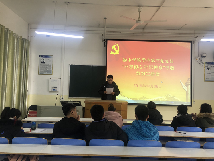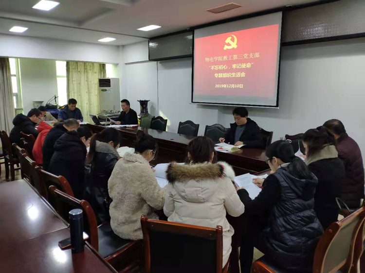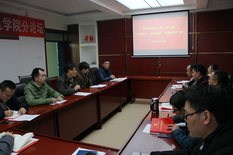 12月9日,学院员工第一党支部、员工第二党支部、员工第三党支部、员工第四党支部、研究生党支部分别在教二楼T1教室、教三楼05教室、06教室、理科楼501会议室开展“不忘初心、牢记使命”专题组织生活会;12月10日,学院教工第一党支部、教工第二党支部、教工第三党支部分别在理科楼911会议室、501会议室、511会议室开展“不忘初心、牢记使命”专题组织生活会。各党支部全体党员参加,活动分别由各支部书记主持。