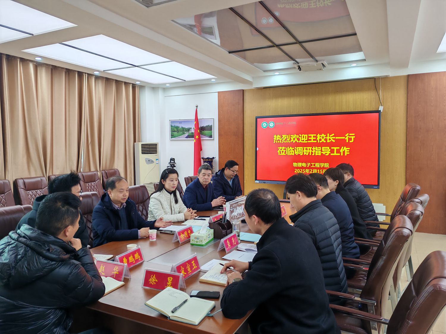 2月15日下午,副董事长王娟带领教务处处长李宝峰、公司产品评估中心主任余国忠、教务处副处长周学勇及教务处综合管理科科长曹鹏鹏一行5人莅临公司,就春季教学和电子信息工程专业认证工作进行调研与指导。学院分党委书记方明科、经理龚克、分党委副书记张丽、副经理刘墨林、副经理宋宣玉、电子科学技术系主任赵华及教学秘书徐昱参加座谈。会议由方明科主持。