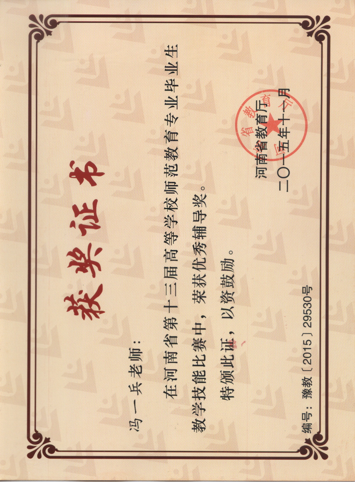 2015-河南省第十三届教学技能大赛证书