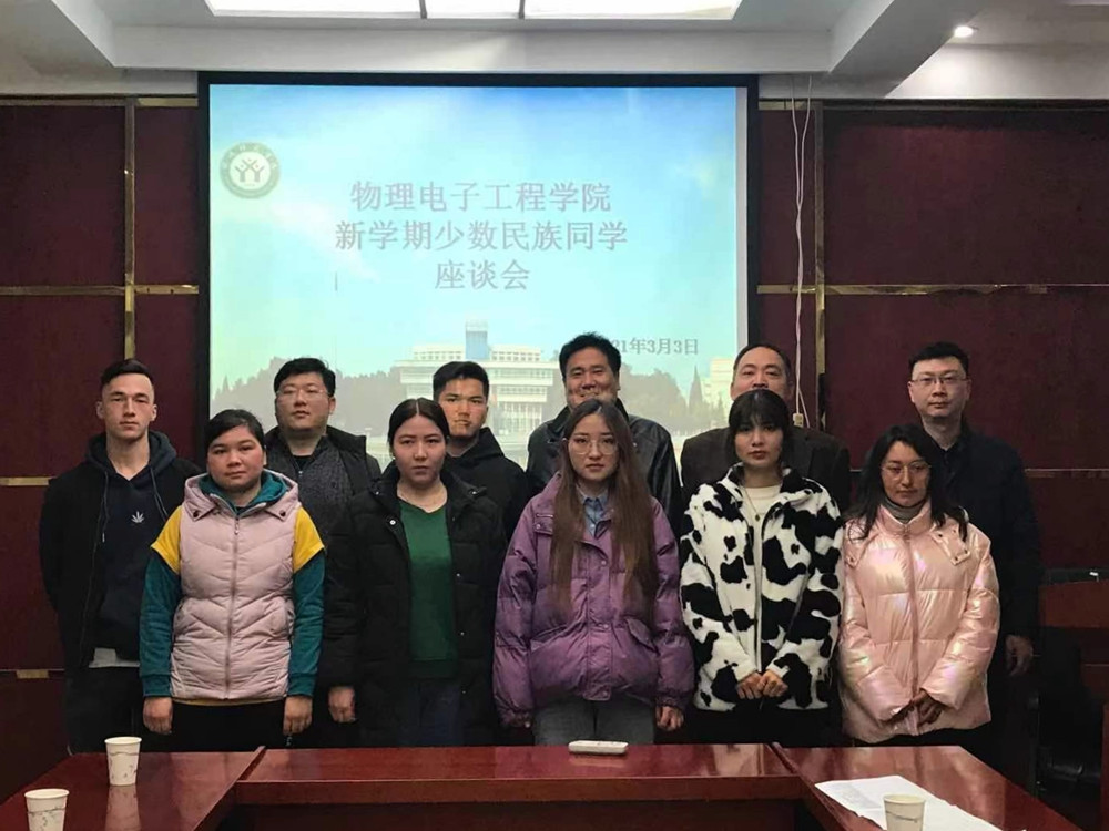 情溢物电共奋进,民族团结一家亲。为进一步提升教育和服务工作,有效地关怀、温暖、团结少数民族员工,3月3日下午,tyc33455cc太阳成集团新学期少数民族座谈会于理科楼501教室顺利举行。公司党委副书记李刚,特邀嘉宾苏和处长,辅导员杨勇、张康华、牛文娟以及公司新疆少数民族学子们参加此次座谈会。