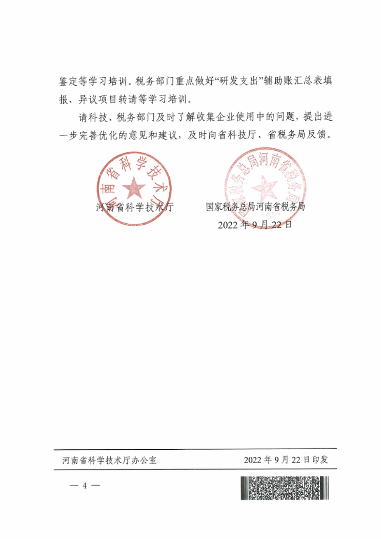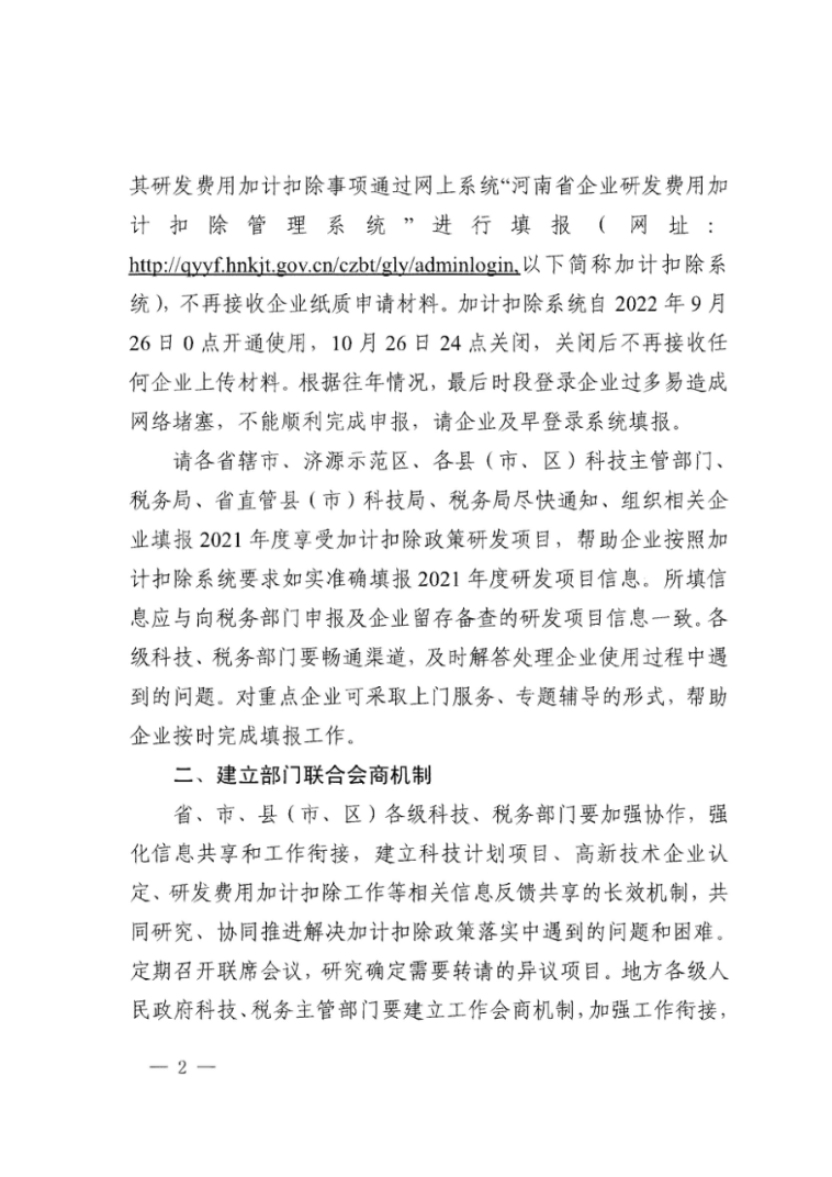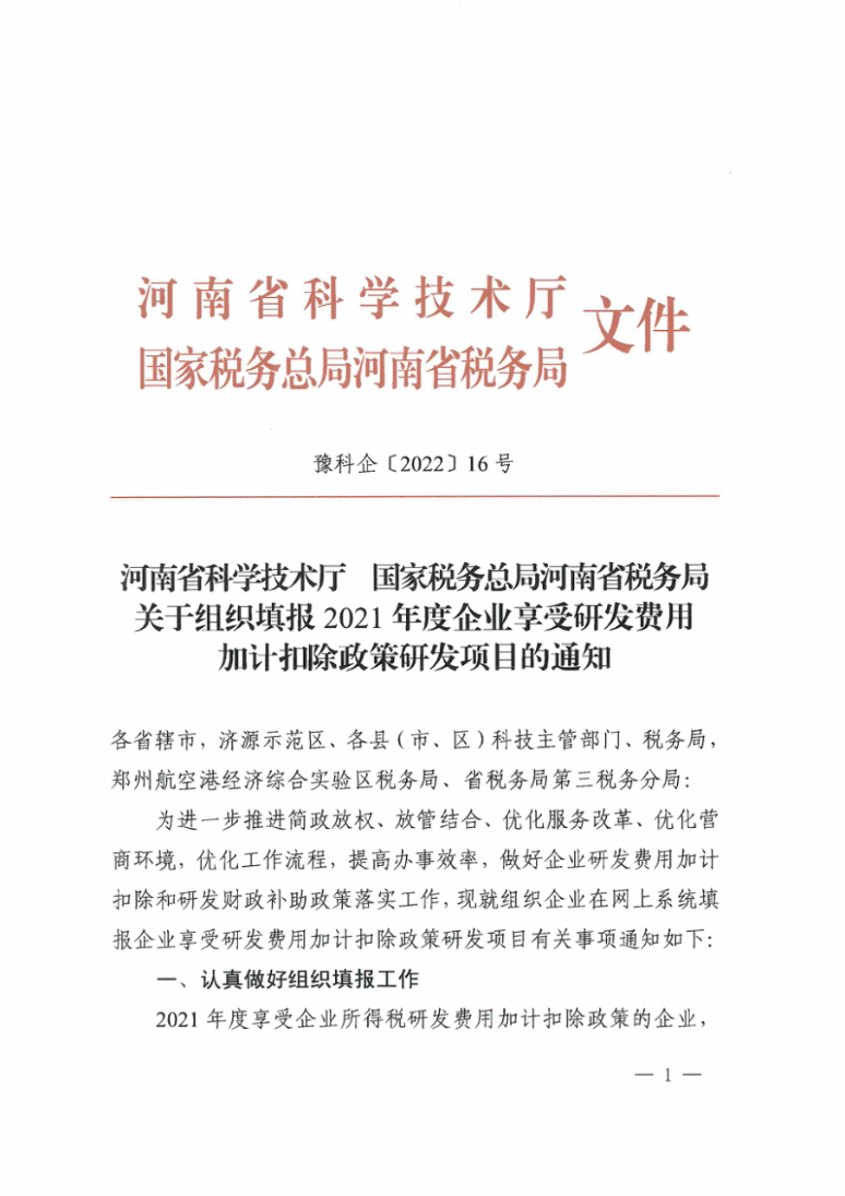 河南省科技厅、国家税务局河南省税务总局关于组织填报2021年度企业享受研发费用加计扣除政策研发项目的通知