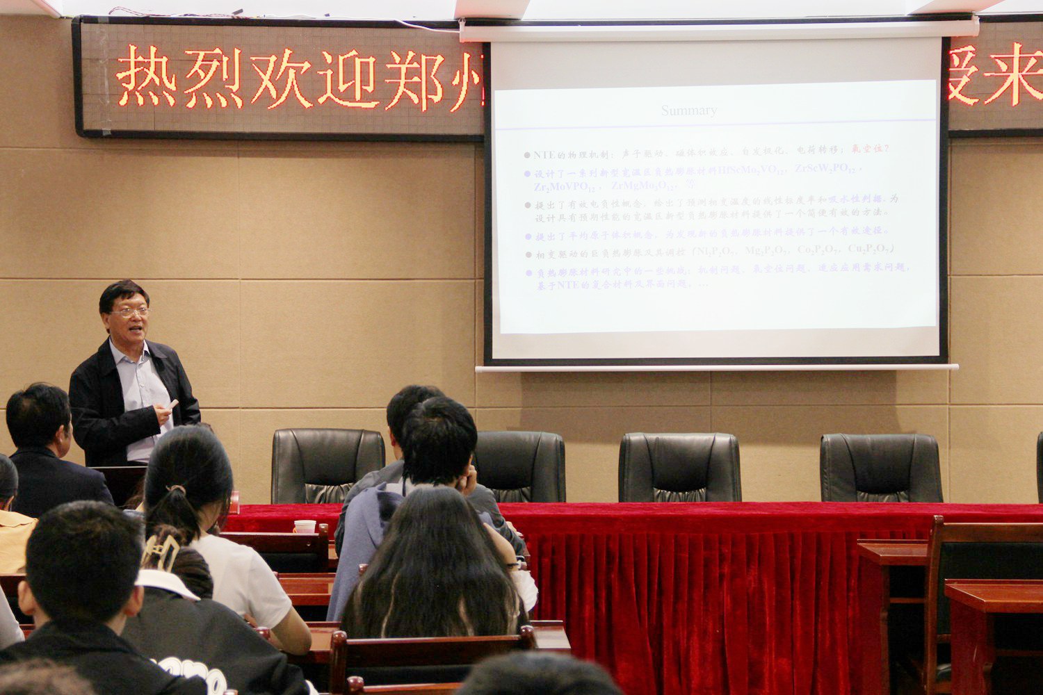 5月12日,应学院邀请,郑州大学梁二军教授来公司讲学,在理科楼会议室作了题为“负热膨胀材料研究现状、挑战与机遇”的学术报告。学院教师、研究生及本科生聆听了报告。报告会由副经理龚克主持。